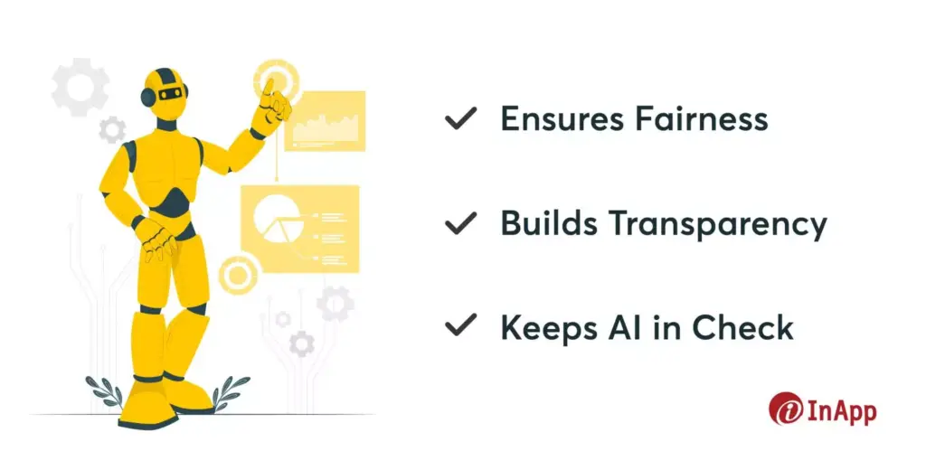 Responsible AI makes AI’s decision-making process clear and understandable. With responsible AI, end users can see how AI arrives at conclusions, which builds trust. This transparency helps us spot any mistakes or biases and makes sure AI isn’t doing things we can’t understand.